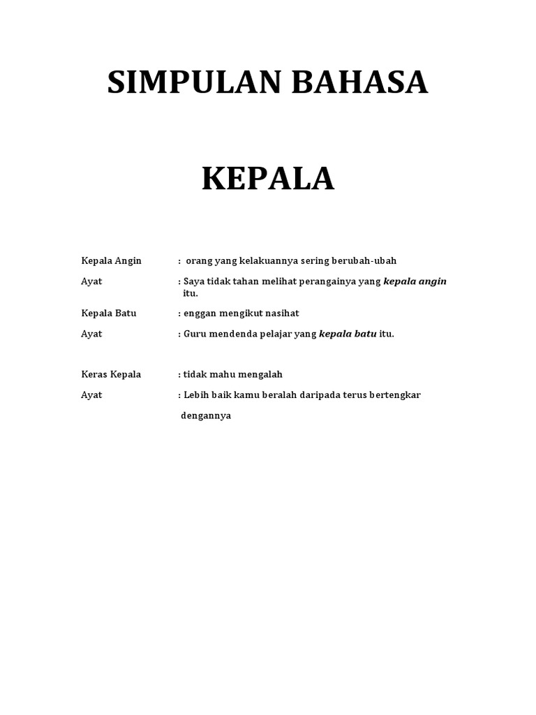 Simpulan bahasa merupakan peribahasa melayu yang biasanya terdiri daripada dua patah kata. Add to my workbooks (0) download file pdf embed in my website or blog add to google classroom Penggunaan simpulan bahasa di penulisan karangan pada peperiksaan semua tahun, ujian upsr, pt3 ataupun spm oleh para pelajar adalah digalakkan untuk mendapat markah yang lebih tinggi. Kamus ini juga dilengkapi dengan gambar bagi menambah lagi kefahaman murid. Collection of simpulan bahasa which can be personalized by adding notes.